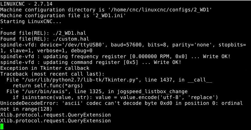 После запуска lcnc, минут через 15, если не управлять работой шпинделя, модуль spindle-vfd виснет наглухо и помогает только перезапуск lcnc и принудительное убийство процесса spindle-vfd