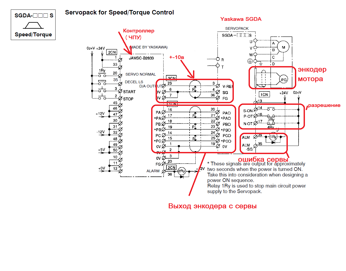 Выходы: аналоговый +/-10V, дискретный Servo-ON 24В или "сухой контакт".