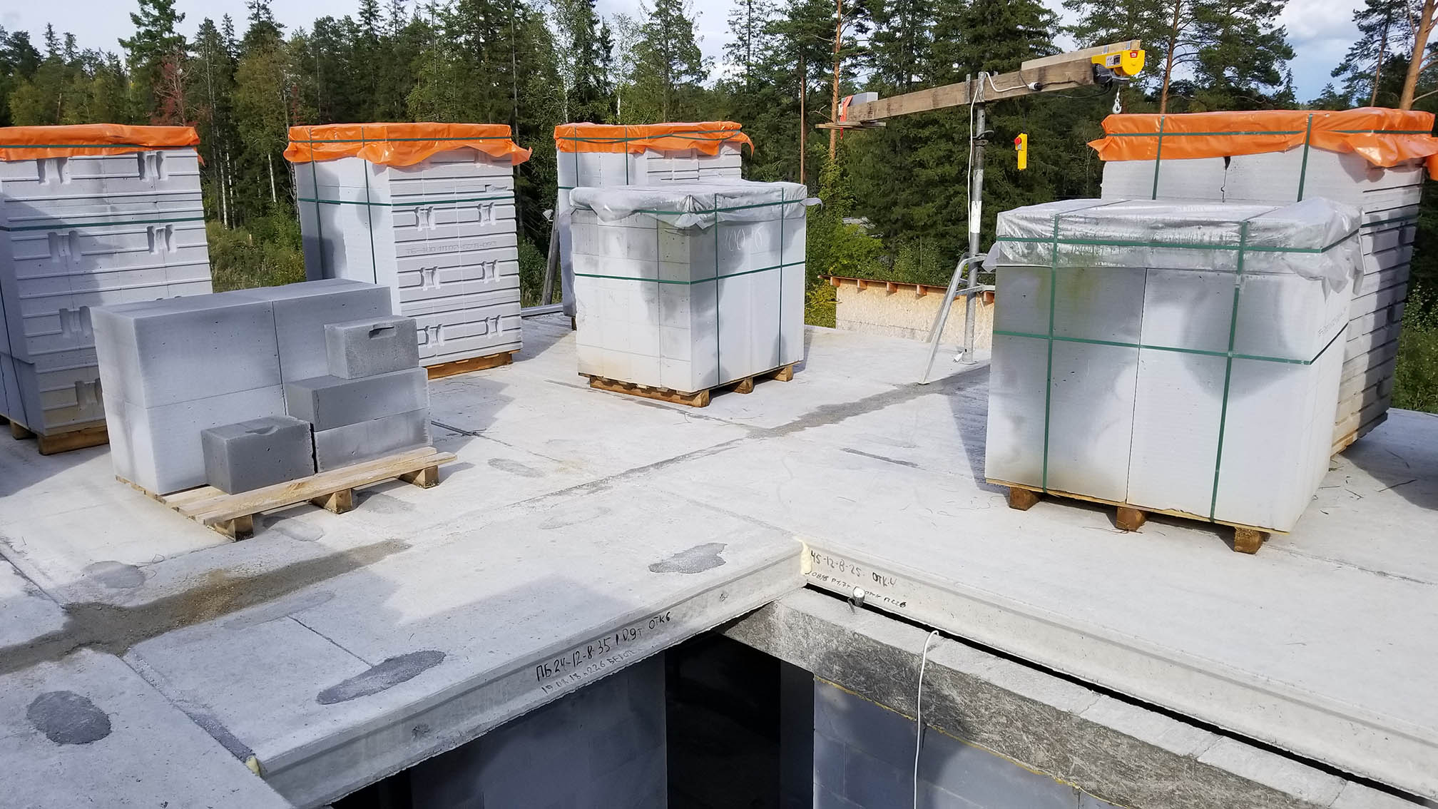 Под новый год удалось договориться с краном, чтобы уложить плиты. Но он так и не приехал. Не завелся в −35°C.