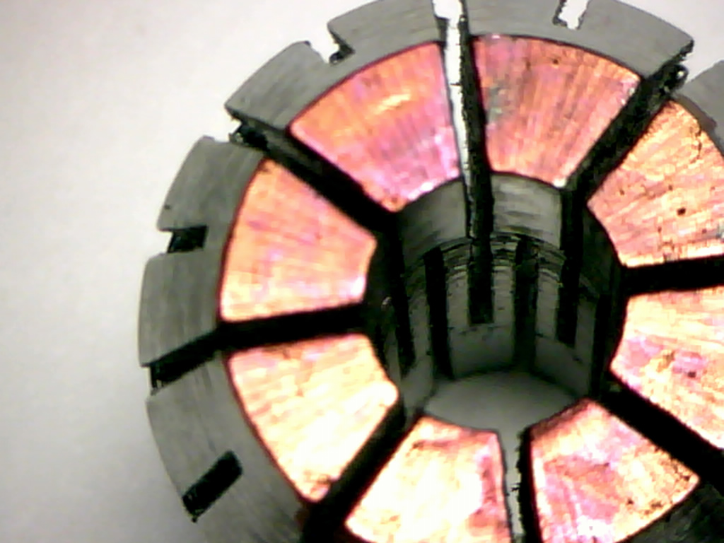 Кстати, при подготовке к "фотосессии", я продул цангу компрессором, и по бокам вылезли вот такие хвостики, образовавшиеся при прорезке пазов. Держатся довольно крепко. Как они могут повлиять на центровку инструмента, если вовремя не заметить, говорить не требуется