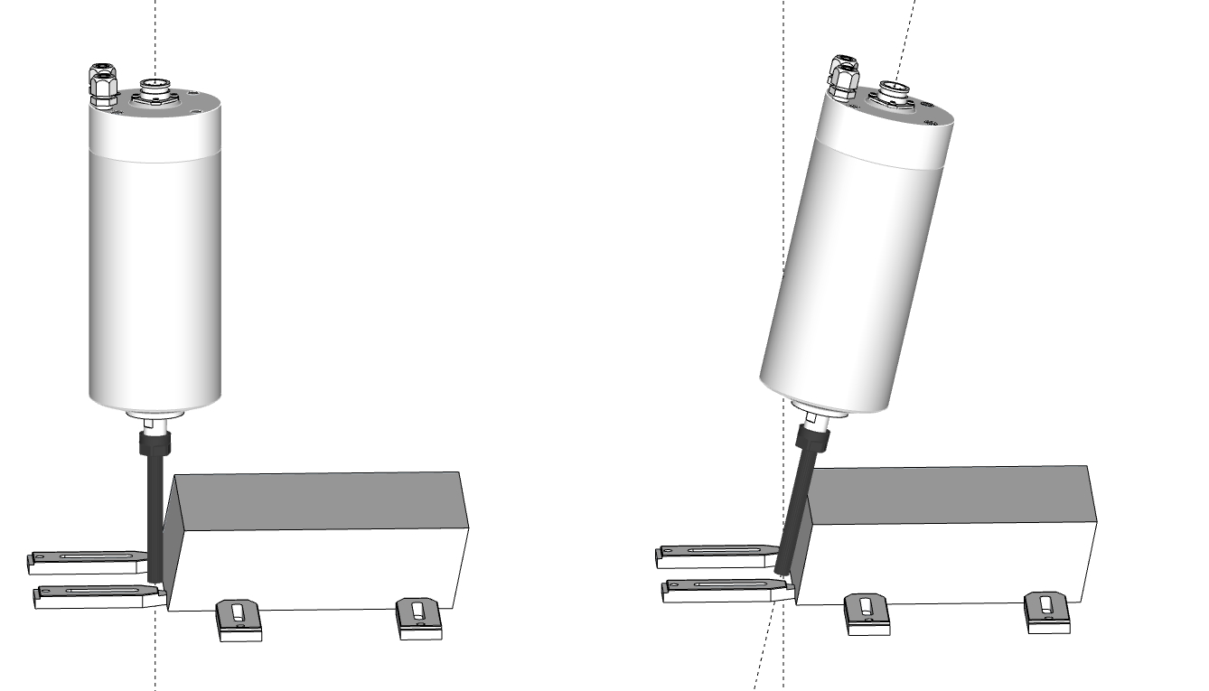 Для визуализации, сделал чертеж переворота заготовки в 2 плоскостях при неправильно выставленном шпинделе. Чертеж в масштабе (толщина заготовки 50мм, завал оси шпинделя 10мм - для наглядности, соответственно по пропорции можно под свои параметры подогнать...)