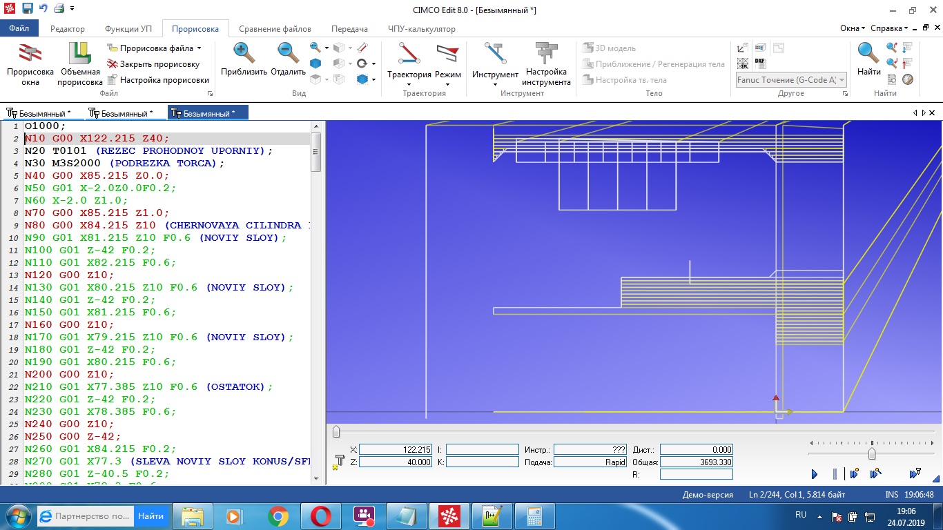 Сделал обработку конусов и галтелей, при вводе их параметров для левой части КТЭ цилиндр. Еще для внутреннего контура такое сделаю и буду считать, что кибер для основных токарных операций создан. Дальше видимо возьмусь за реализацию вековой мечты человечества, генерации ТП и УП с чертежа.