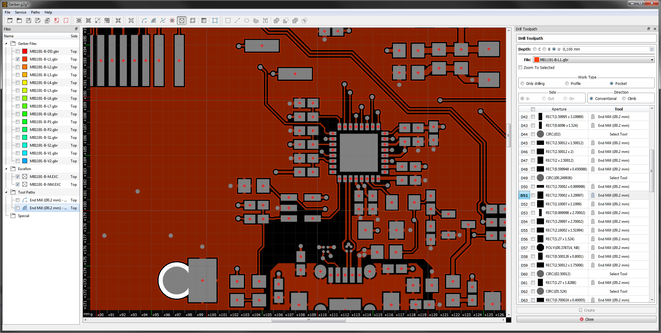 Не всё так просто. С одной стороны функциональность вырезания по контуру в G2G имеется. Но с другой стороны она там подразумевалась для обрезки платы или каких-то больших отверстий с соответствующим инструментом типа большой фрезы. В то время как здесь надо будет применять тот же инструмент, что и для фрезерования дорожек (0.1 мм), но при этом для прорезания отверстий по контуру (наверняка в несколько проходов). Конечно же тоже ничего фантастического, но у меня нет уверенности, что этот вопрос обдуман и оптимизирован в данном ПО. Тем более, что автор убегает от всех вопросов на эту тему.