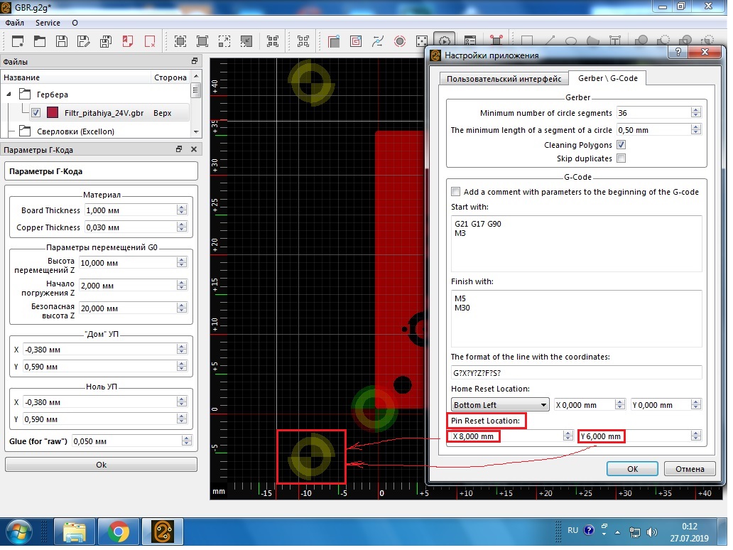 Кстати, а есть в программе возможность поворота платки целиком и смены точки начала координат? Понятно, что это всё можно сделать в CAD'е, но это очевидно не правильно: эти же файлы используются для создания на платок на разных станках или вообще на производстве - глупо их подстраивать под конкретные станки/заготовки.