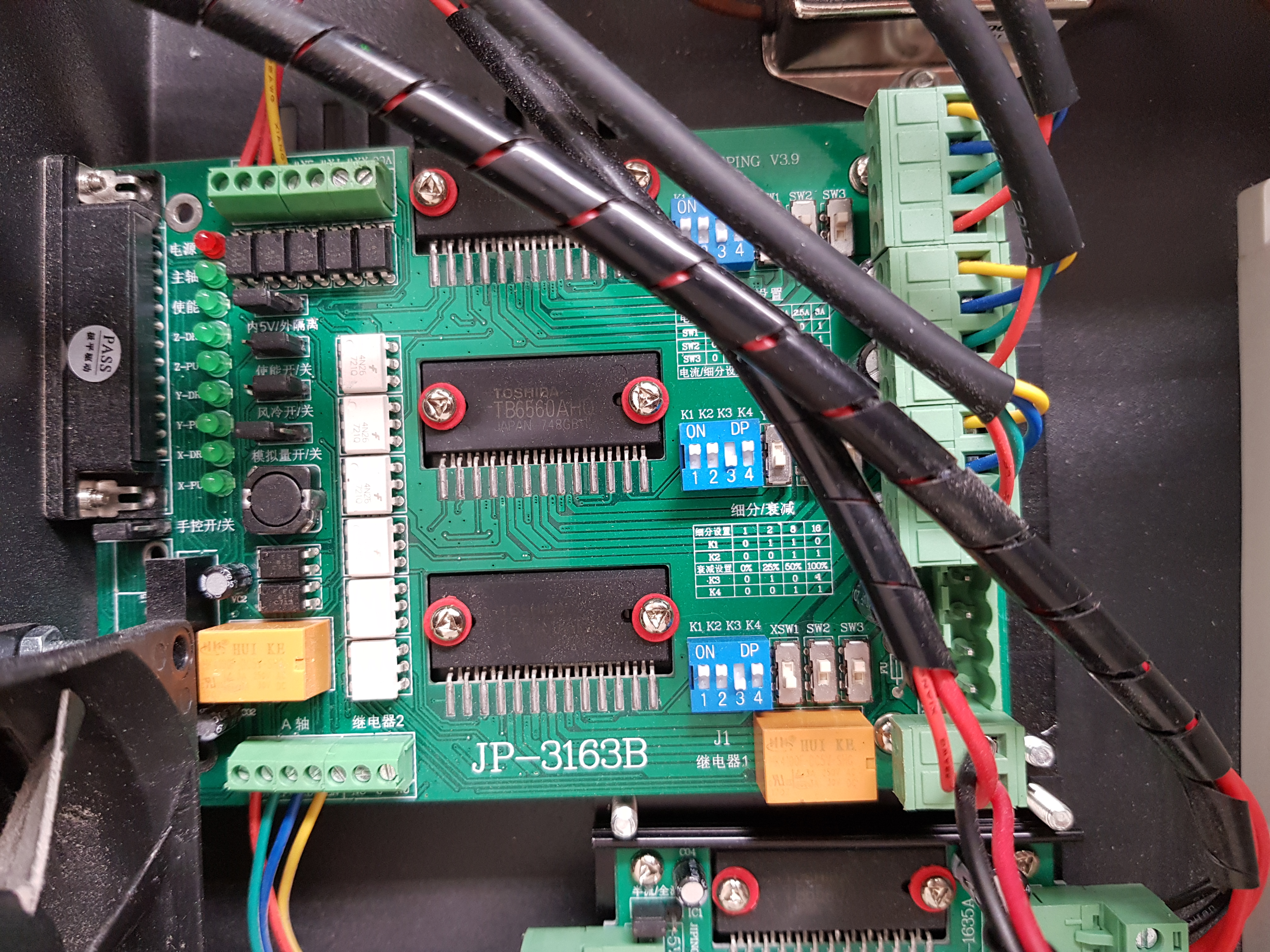 Два месяца назад для работы пришлось взять китайский noname CNC 6040 с eBay. Плата jp-3163b, провода идут прямо на движки (без драйверов). Софт USB CNC Controller.