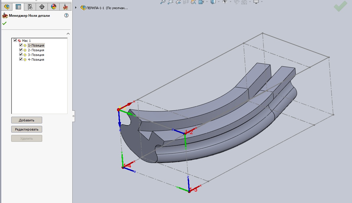 Далее создаю Ноль детали: вершина это ноль, одна сторона прямоугольника это ось Х, вторая сторона это ось У.