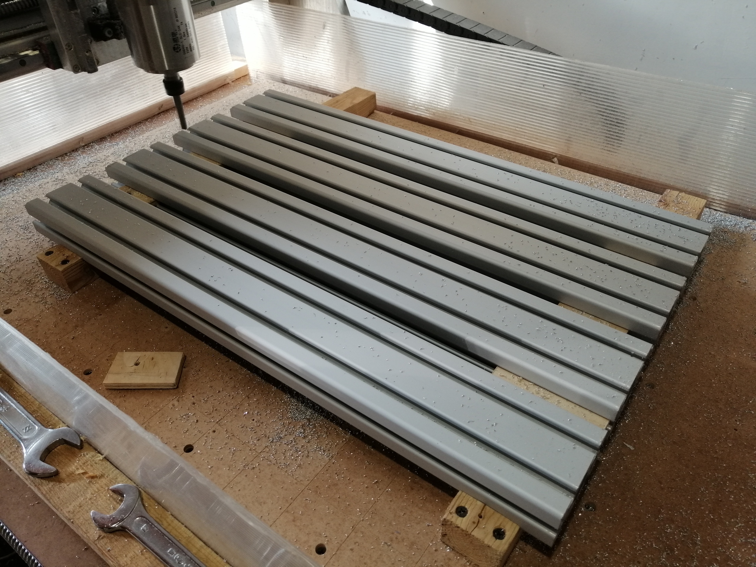Торцанул профиля на 2 комплекта. Для версии 600х900 поперечины рамы из профиля 40х80 плашмя- все прогнал за один установ.