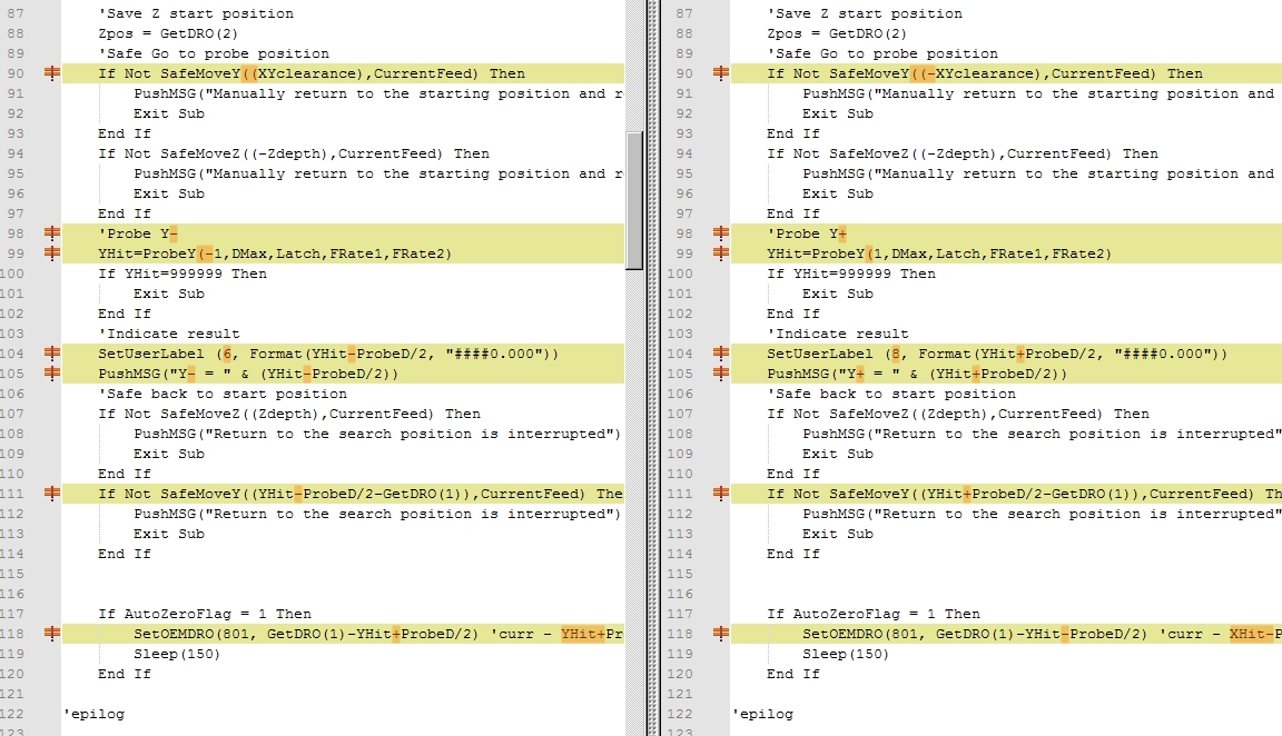 снимая видео в заведомо неправильном положении я хотел указать на другой факт , скрипты ведут себя по-ра-зно-му ! те Y- делает полный цикл измерений даже по воздуху ,а Y+ делает только отъезд в бок без опускания по оси Z, Вы обратили на это внимание ? именно это я и просил объяснить. Скрипты отличаются только знаками ( как понимаю направлениями перемещения ), но один работает, другой нет , вот я и пытаюсь понять где корень проблемы, софт, железо и тп
