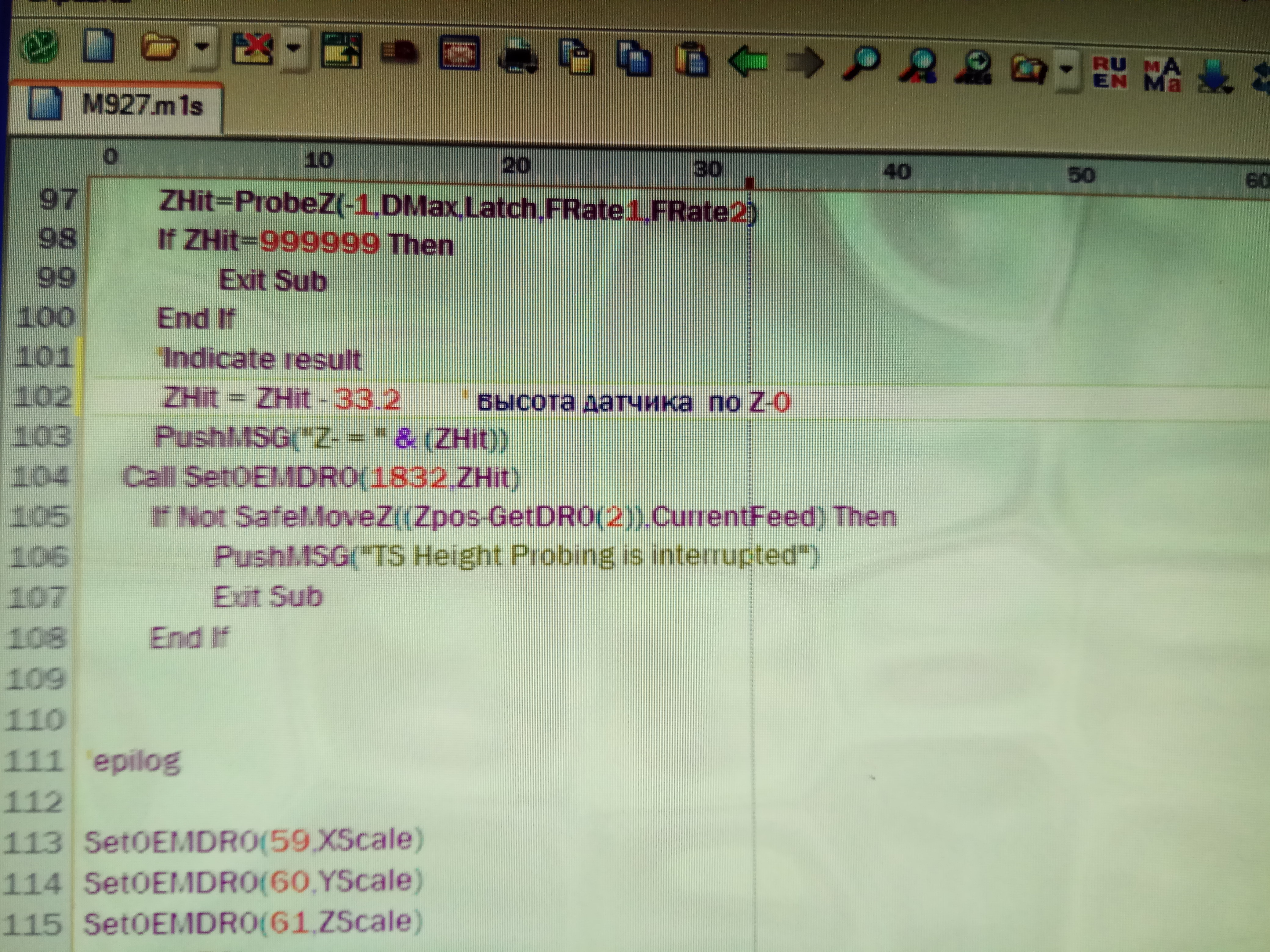 Внести правку в макро M927.m1s, в районе строки 101 вставить поправку на высоту датчикаdumpdr писал(а): А если через датчик , то как его учесть при этом?