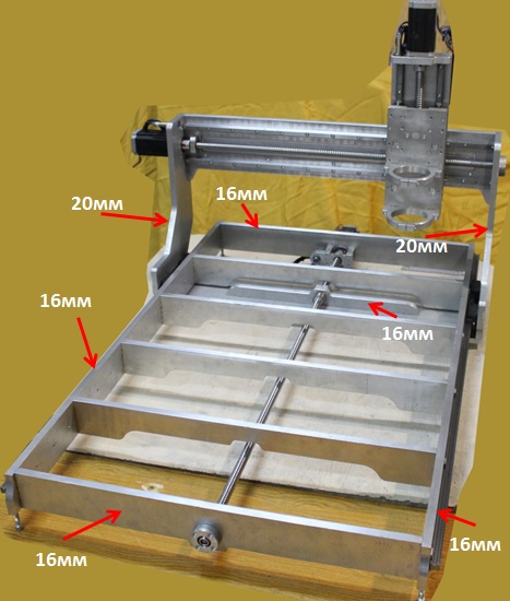 Из модификации стандартной конструкции: при обсуждении я попросил Наиля сделать боковины портала 20мм вместо 16мм (на фото схема, присланная Наилем).