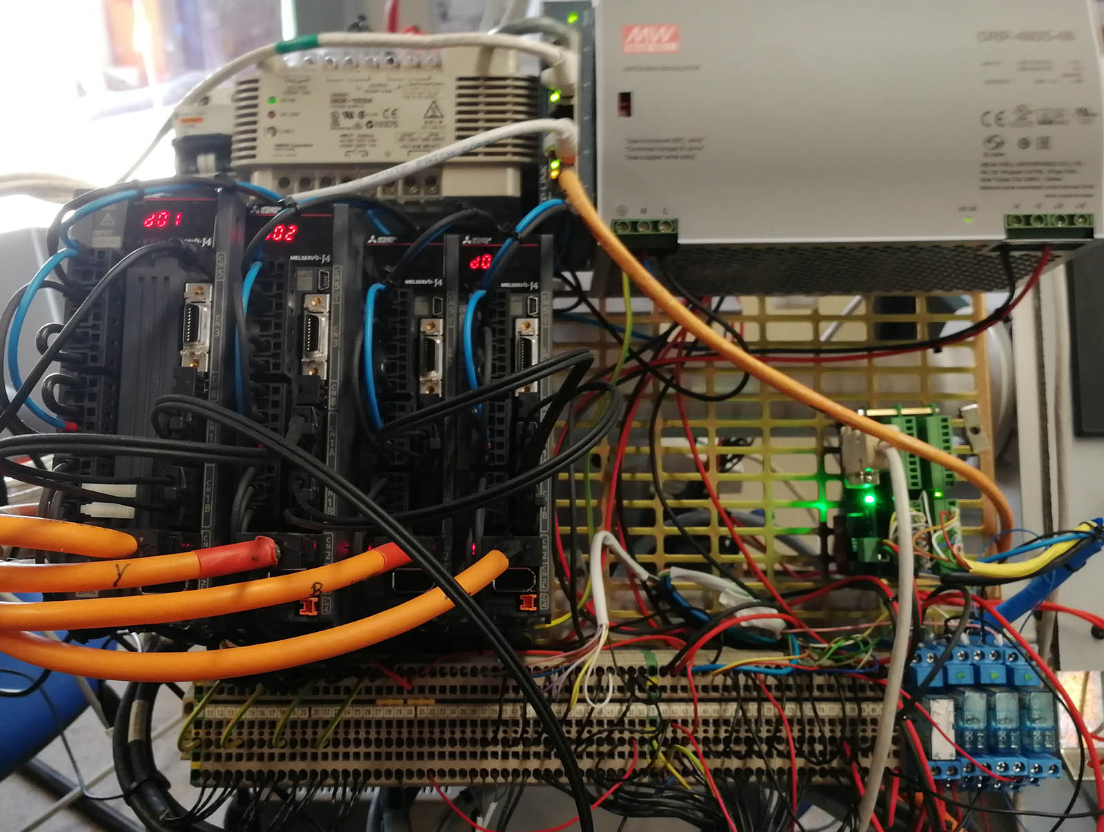 запустили тут машину интересную. выкинули красивые мицубисевские коробочки, заменили на комп с linuxcnc и пару колхозных платок - и все зажужжало как надо ;)