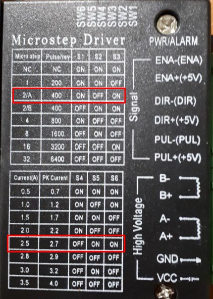 Как правильно настроить драйвер TB6600 для шд 23HS5628 ?
