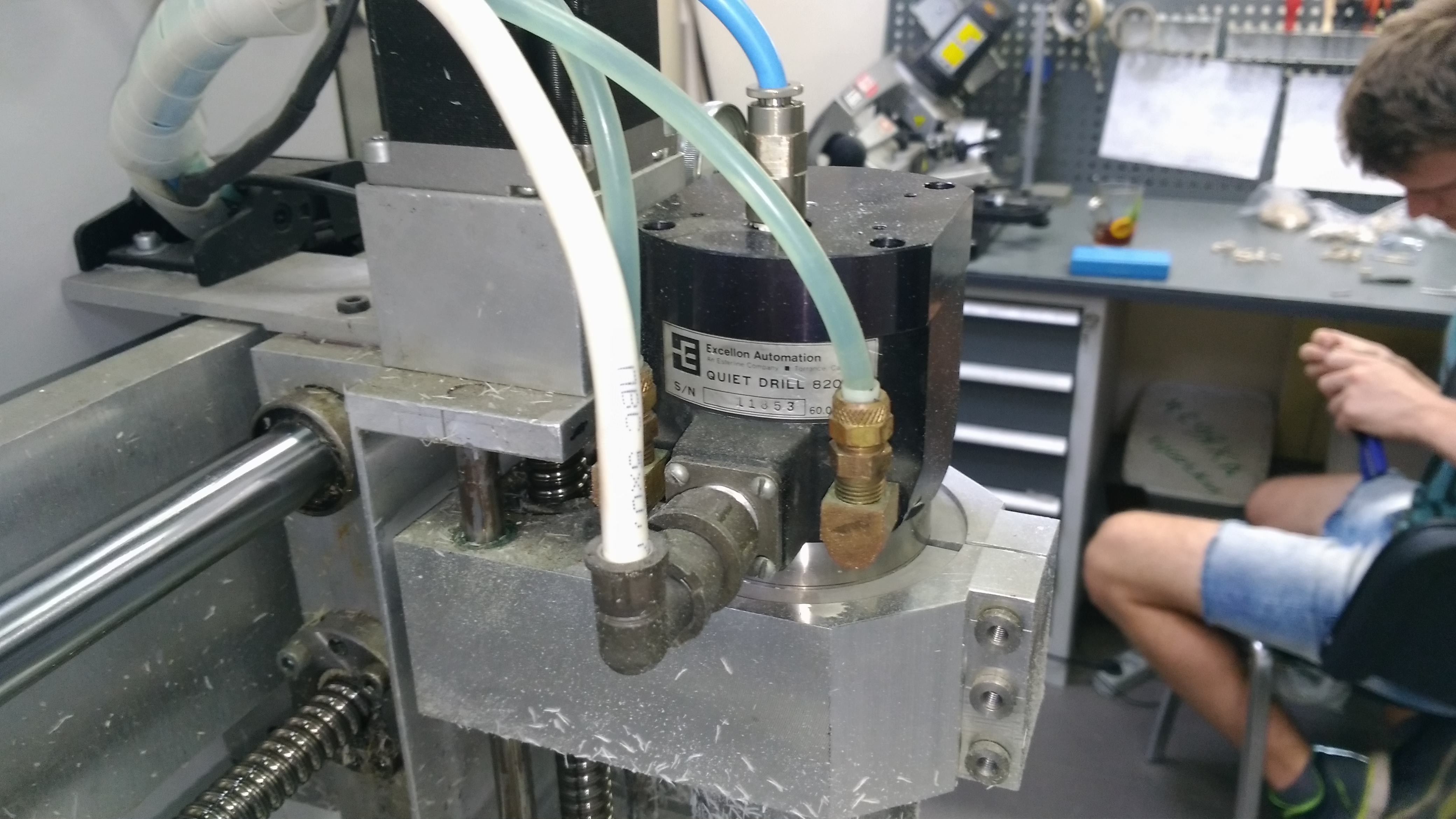 Шпиндель имеет автосмену с помощью выталкиваемой штревелем цанги. Цанга рассчитана на инструмент с хвостовиком 3.175мм. Есть цанга на 3мм.