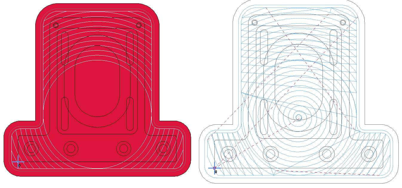 Hugo писал(а):Делаю крепление для мотора со шкивом (с возможностью натяжки ремня). 2-ух сторонняя фрезеровка. Софт ESTLCAM. Трохоидальная фрезеровка, съем ~ 7мм за проход. (трохоидальноя фрезеровка делает круговые движения, по Z тоже фреза скачет. Инструмент не нагревается, работают все кромки фрезы а не только кончик. При правильной подобранной скорости, можно за раз заглублятьтя на ~ ~ 2 диаметра фрезы...)