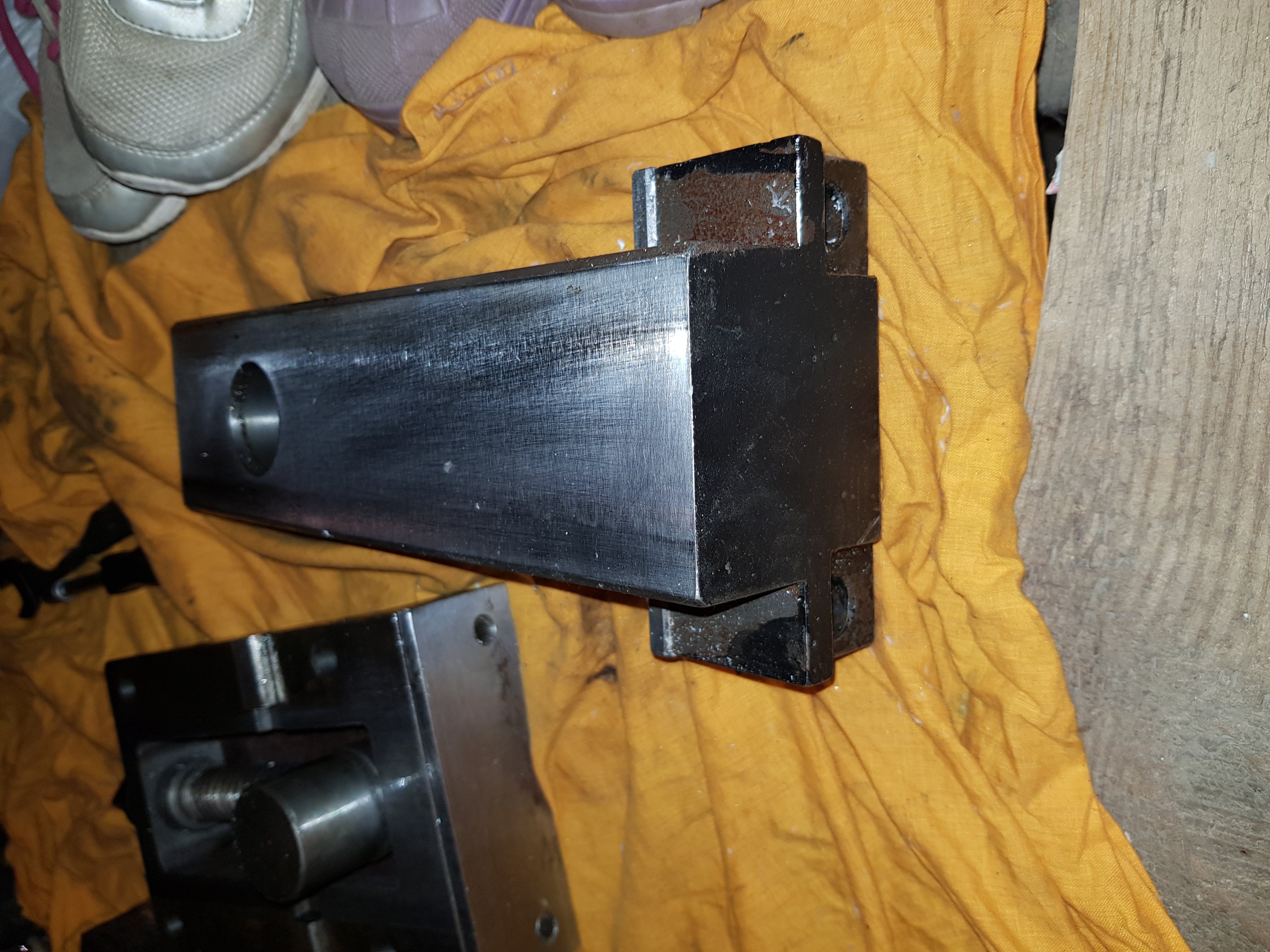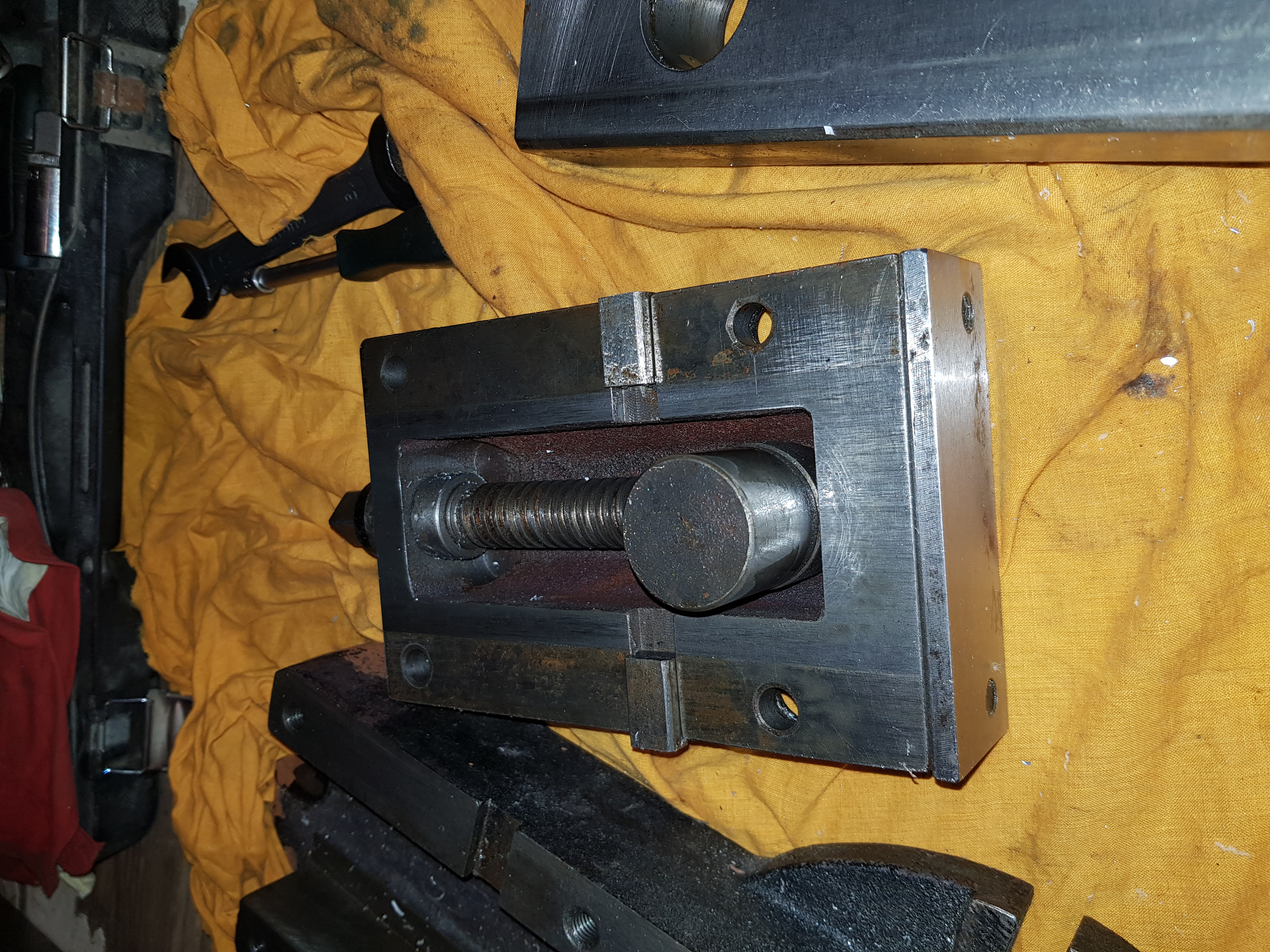 Подвижная передняя узкая. Она проходит всем телом по направляющей тисков. Вот фото. Разобрал и почистил, смазал.
