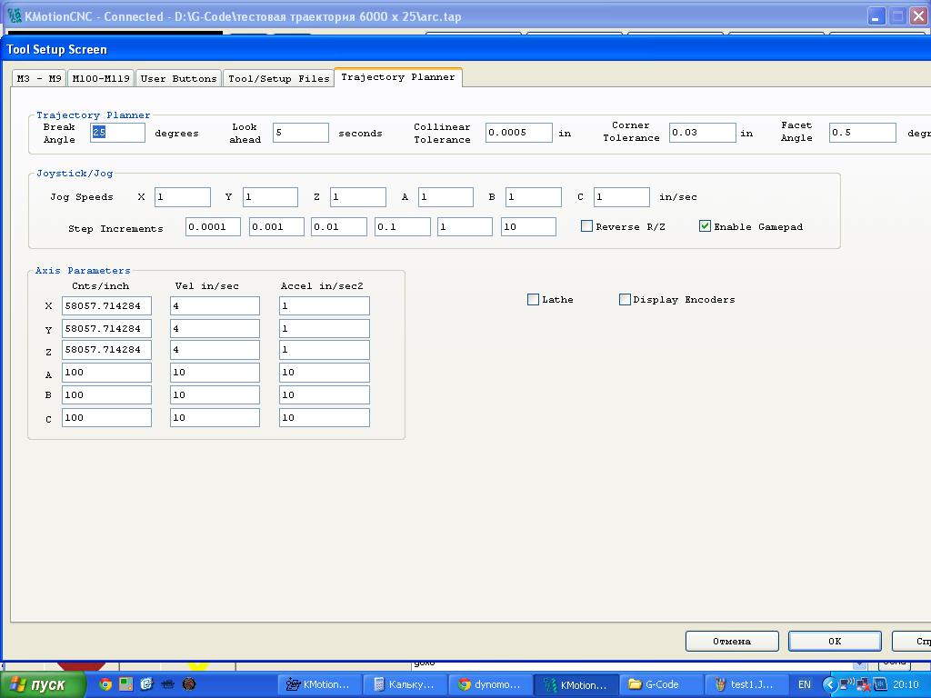 mycnc писал(а):На моей системе учитывается не только линейное ускорение, но и центростремительное при круговой интерполяции