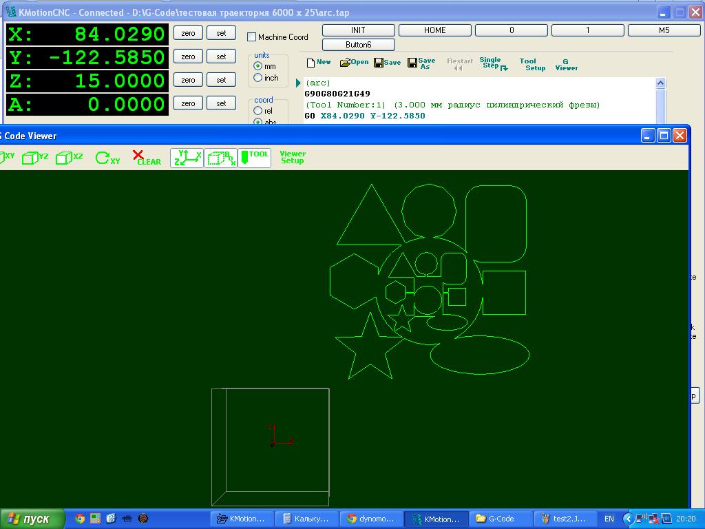 И еще понятно, что NCStudio не мухлевал, и честно прошел траекторию за 3:12, а вот EdingCNC по каким-то причинам заметно отстал от идеально возможного результата.