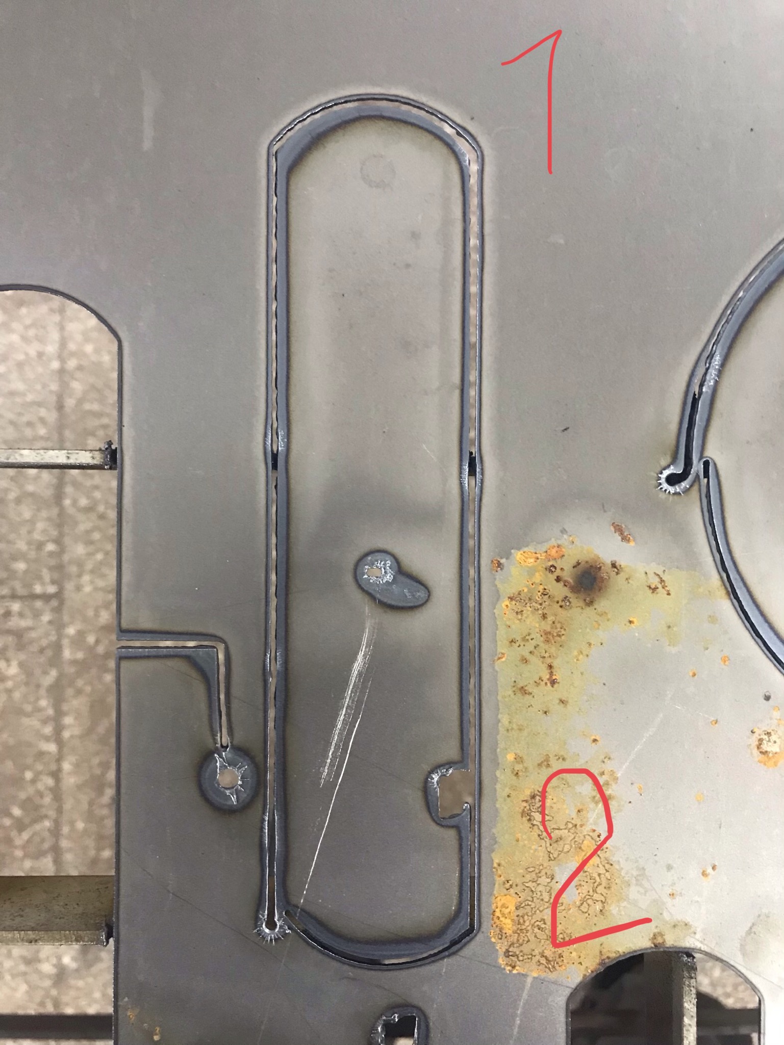 Установил перпендикулярность, все ровно, но вот опять делаю рез, та же басня получается, на фото приложенном вырезается деталь по радиусу со стороны -1 , все отлично, когда плазма поехала обратно, и радиус с другой стороны -2 начинает резко зарезаться