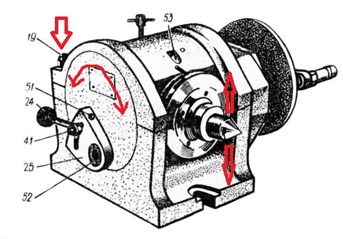 вообще-то это регулировка угла наклона оси вращения делительной головки относительно плоскости основания.............регулировать высоту предложенным выше способом лишено смысла............