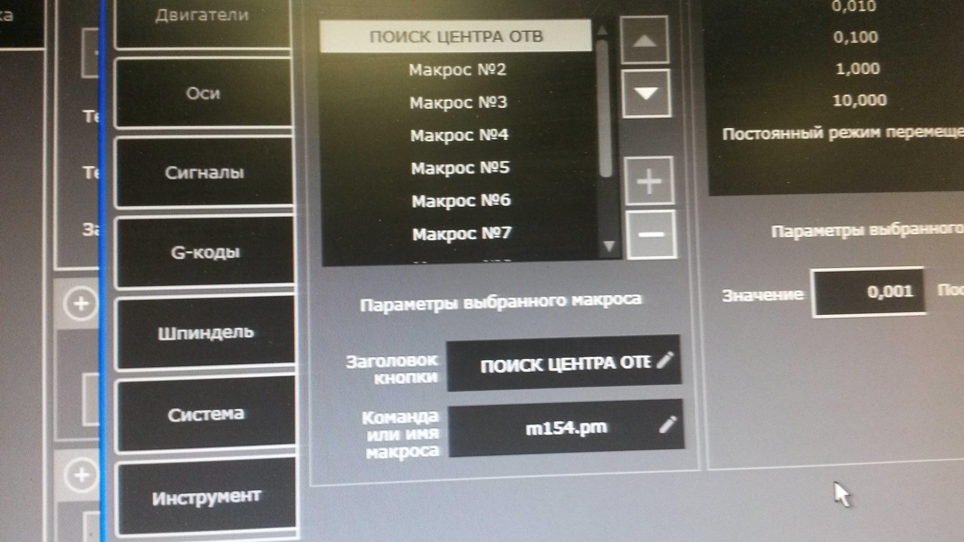 Ниже макрос для поиска центра отверстия. Запускать макрос необходимо, когда датчик находится внутри отверстия.