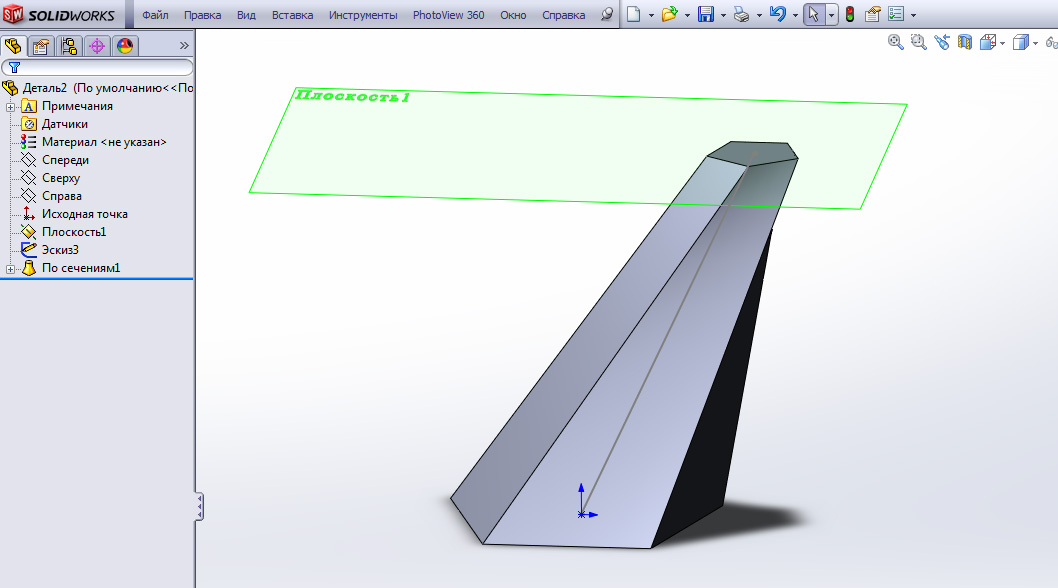 2) Добавляем параллельную плоскость (на необходимом удалении)