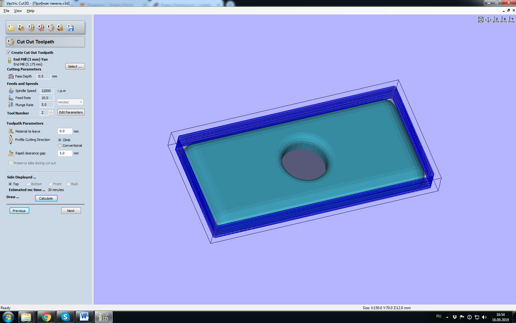 Посмотрите, разница при генерации траектории по материалу в размер и по материалу с запасом