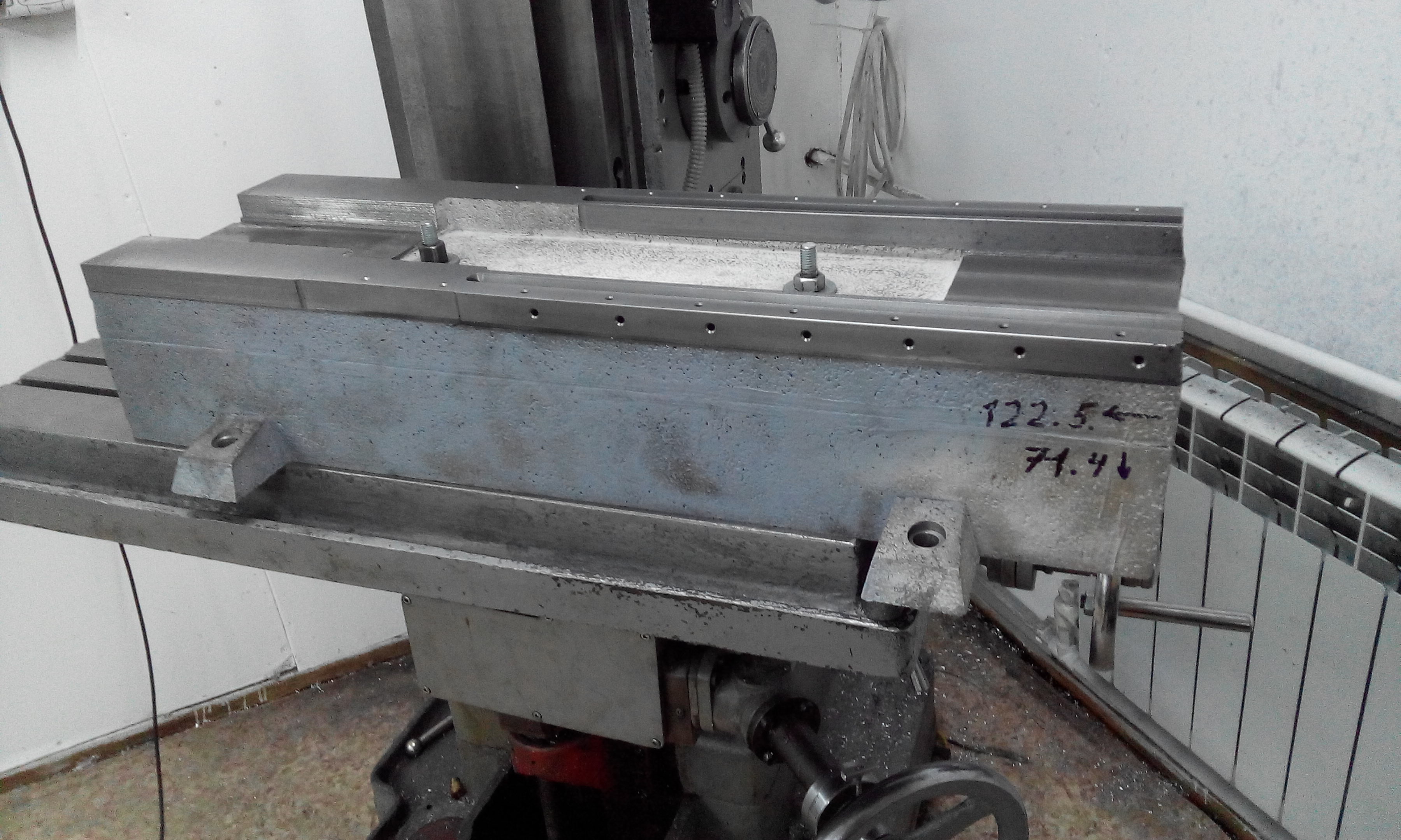 Добил верхушку у станины. Теперь надо отвезти на шлифовку, а потом можно сверлить под рельсы.