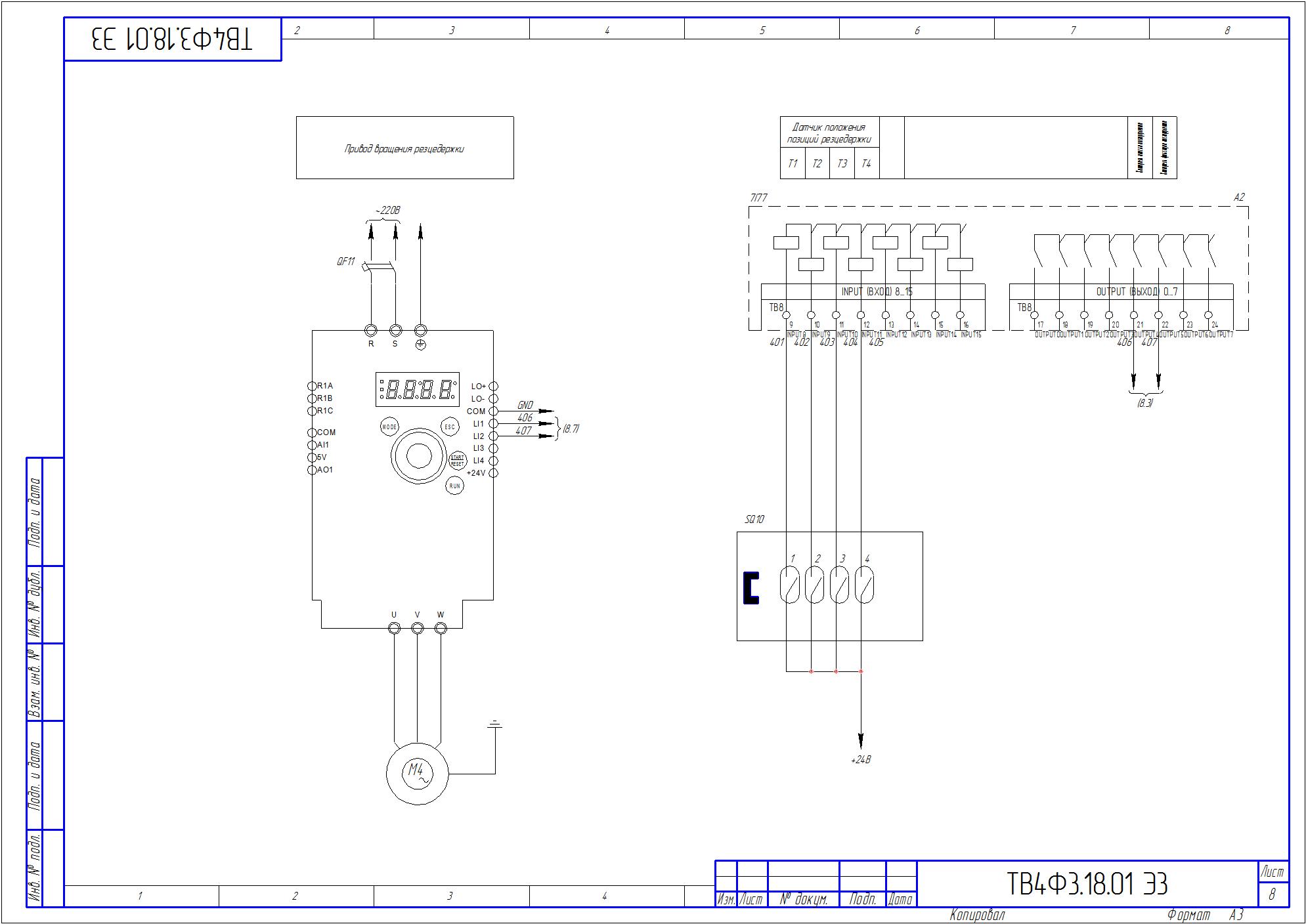 Резцедержка китайская на четыре позиции Подключил по следующей схеме: Двигатель резцедержки управляется частотником типа Altivar 212. Управление вручную опробовал, работает. При замыкании контакта на частотнике №406 идет вращение, а при замыкании контакта 407 идет (реверс) фиксация.