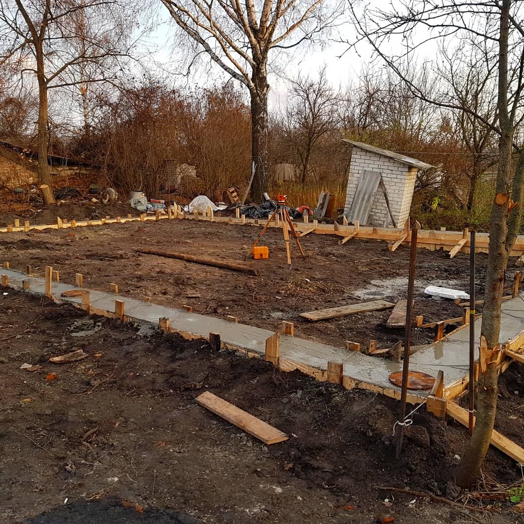 Снес старый сарай, выровняли, выкопали траншею, просверлили под сваи, навязали арматуры и тд тп, опатубки все дела, и залили фундамент.