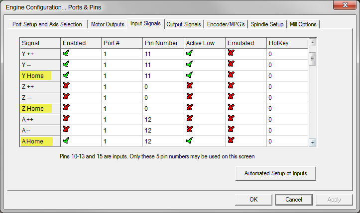 Вот первая попавшаяся схема из сети. Все 6 лимитов и Е-стоп можно подключить последовательно через нормальнозамкнутые контакты на один вход. В обычной работе лимиты никогда не должны срабатывать, так как станок знает о своих границ