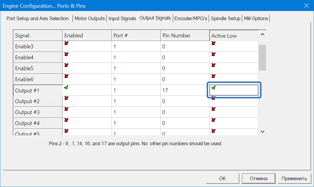 Вот эту галочку поставить, как в инструкции:sergejko писал(а):Добрый день. Подскажите как инвертировать сигнал на 17 реле? В матче нажимаю включить шпиндель и реле выключается , при выключеной кнопке шпинделя реле работает.