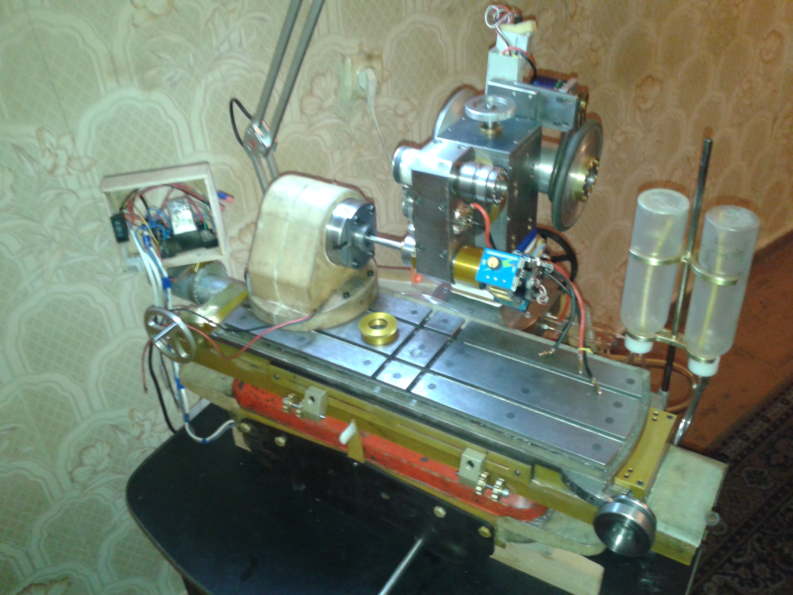 Занимаюсь внутренней шлифовкой. Охлаждение ,штуцера под смазку,муфта привода и переходник на моторчик готовы.