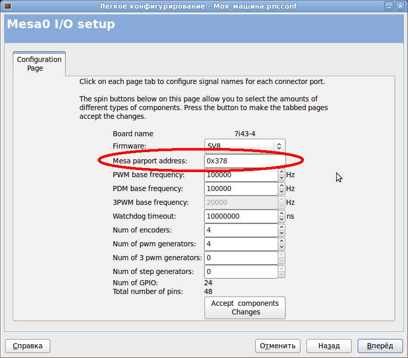 Для установки нескольких LPT портов, нужно знать их адреса, чтобы их прописать в настройках. Для платы 7i43 подключенной к LPT также нужно указать адрес порта.
