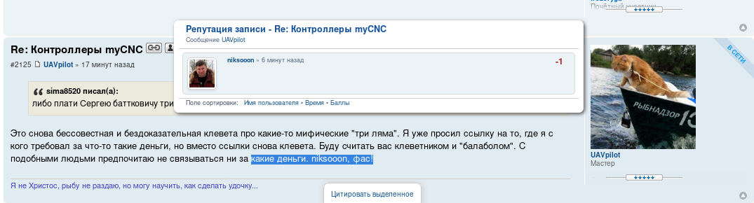 Вы всегда так яростно бросаетесь на защиту mycnc, что от вас упорно ускользает тот факт, что ни разу не сказал ничего плохого про mycnc, даже наоборот я говорил, что технически это очень даже хороший продукт. Просто лично мне он не подходит из-за формата поддержки пользователей. За что вы меня исправно минусуете. :(