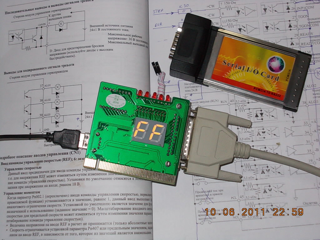 Пытаюсь к ноуту подключить плату MESA 7i43 через PCMCIA - LPT = не работает. На плате 7i43 возле штекера LPT есть группа светодиодов 8шт. Полагаю они должны светиться при обращении к 7i43.