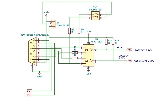 А чем оптроны не устраивают.Мах232 содержит внутри умножитель напряжения до +-12 вольт.Но слабенький.Я его иногда использовал для отрицательного питания ЖК индикаторов.Но сомневаюсь,что потянут в качестве источника для питания энкодера.Если же использовать только как входы позволяющие входное +-12 то, я думаю, не лучшее решение.На оптронах делают в большинстве приводов для источников до 400кгц.Я тоже делаю такие же входа.При этом можно использовать как диффиренциальные выходы энкодеров ,так и с открытым коллектором для +24 вольтовых.