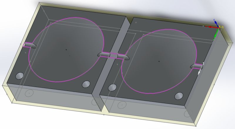 Создал общий контур обработки для двух половинок штампа. Одна часть обрабатывается корректно, как линза, другая вырезается тупо как карман в 2.5D.