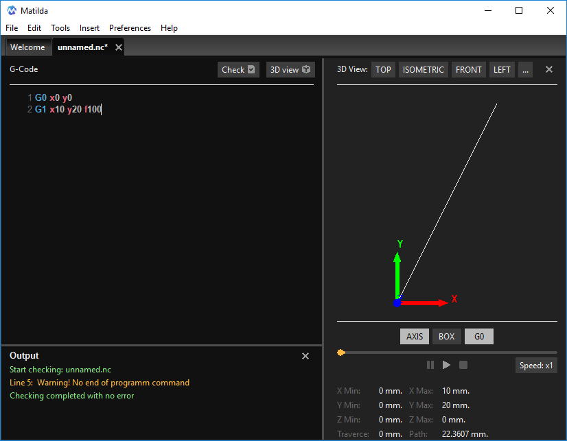 Здесь на форуме наткнулся на упоминание о GCMC(http://www.vagrearg.org/content/gcmc), связался с автором и через полгода родился редактор для создания, редактирования и эмуляции выполнения УП на G-Code и GCMC