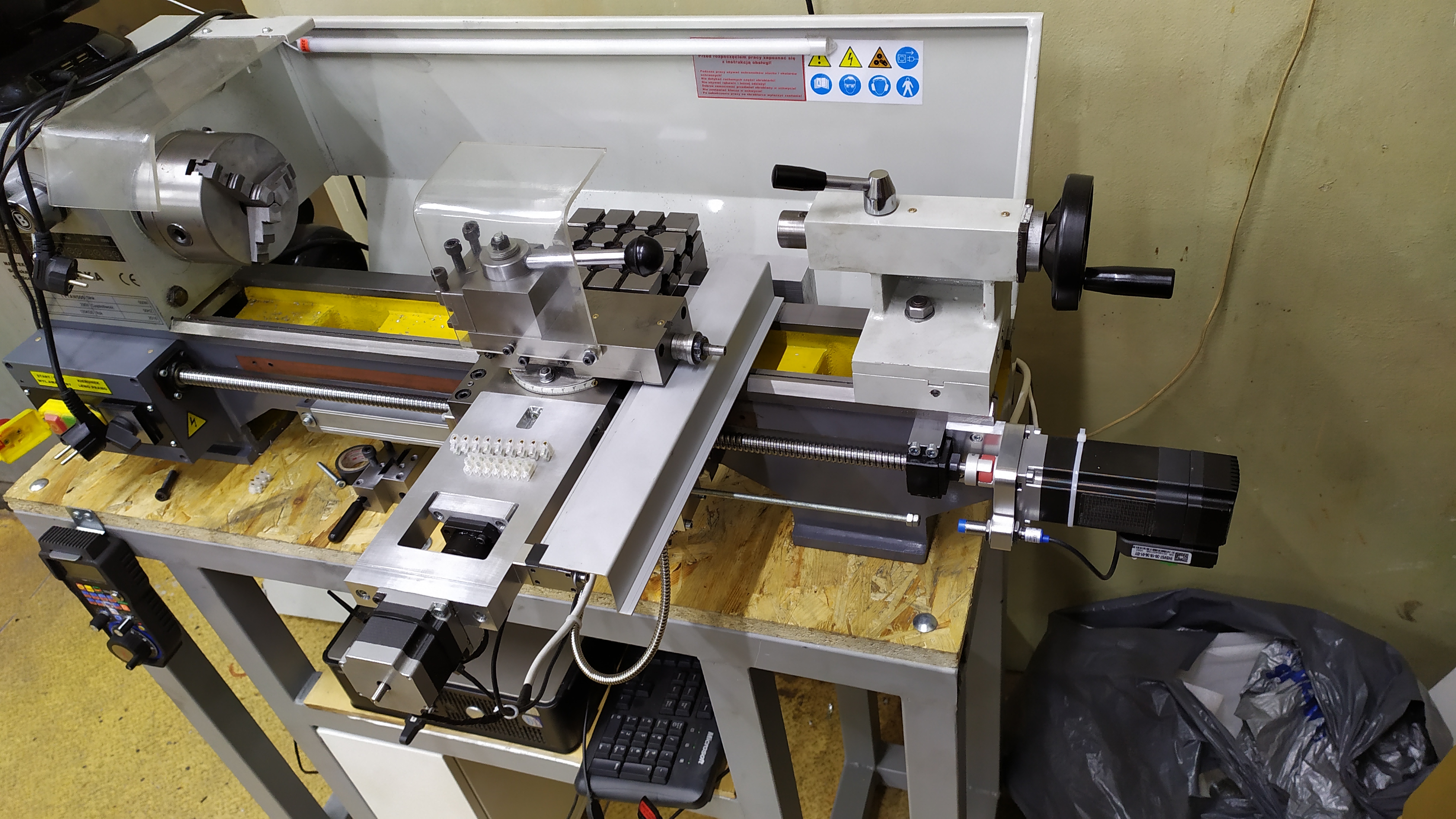 Была заказана кассетная резцедержка вместо стандартной. Стандартная будет служить для отрезного резца, разработка плиты для нее в процессе. Вообщем накидал архивных фото и свежих для ознакомления. Будет управляться пока через LPT с Mach3, позже приобрету ESS.