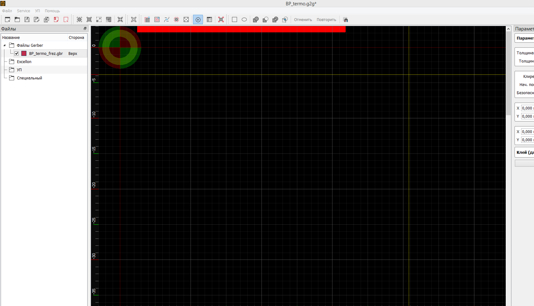 Гербер при импорте почему то ставиться с нарушением относительно нулевой точки координат на 1 мм.