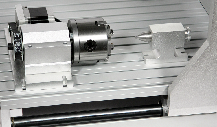 В комплекте четвертая ось ( шаговик с патроном и задняя бабка.Крепеж в комплекте)