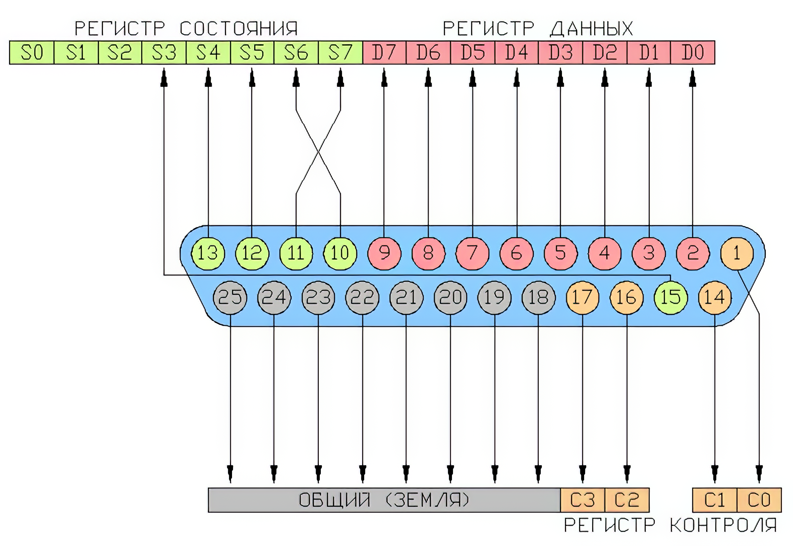Если посмотреть на родное назначение пинов LPT, то, наверное, основная часть вопросов отпадет.