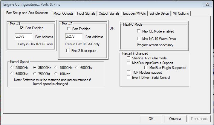 6. Правильно ли я понимаю, что если двигатели встают на удержание при нажатии кнопки RESET в MACH3, значит с настройками LPT порта все в порядке и связь КОМПЬЮТЕР - ПЛАТА УПРАВЛЕНИЯ работает исправно?