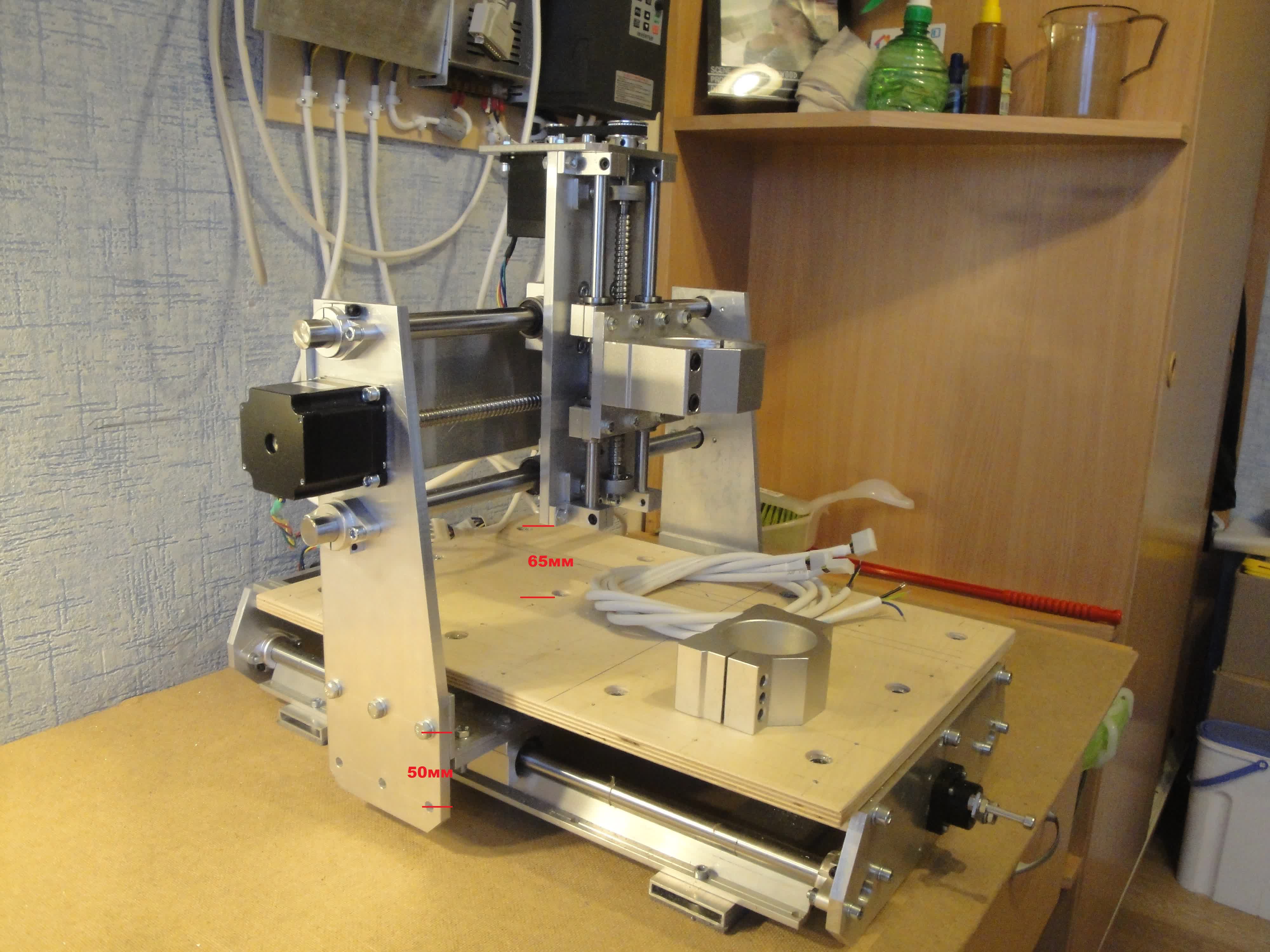 На осях установлены шаговые двигатели НЕМА 23 с моментом силы 10-12кг. Боковые порталы при необходимости можно переустанавливать на новую высоту над «столиком» станка (65мм плюс 50мм, общая высота будет 115мм, смотрим фото).
