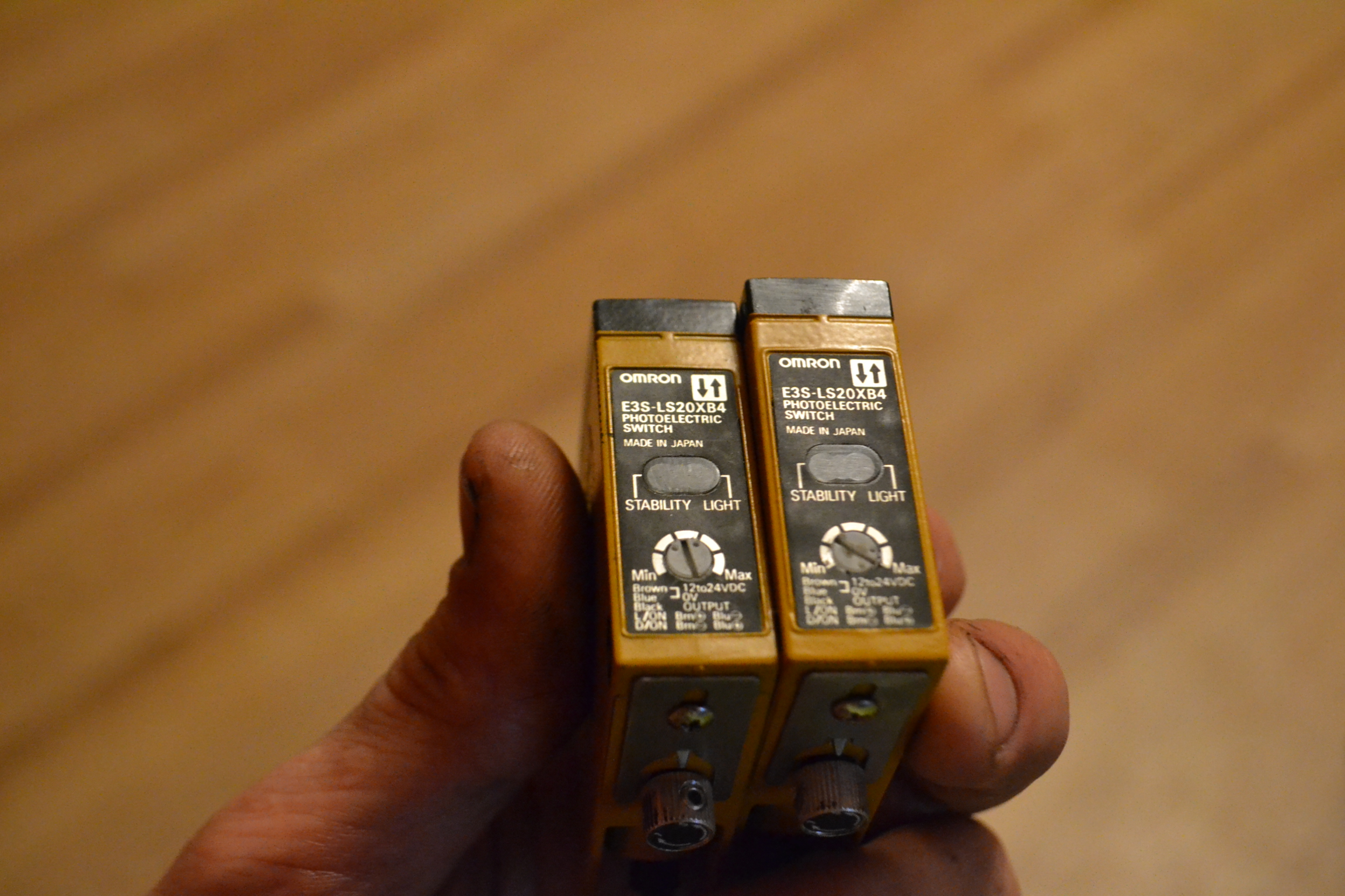 Фотоэлектрический датчик омрон e3s-ls20xb4 2шт definite, 50-250мм, DC, 3-wire, PNP, кабель кусочек около 300мм