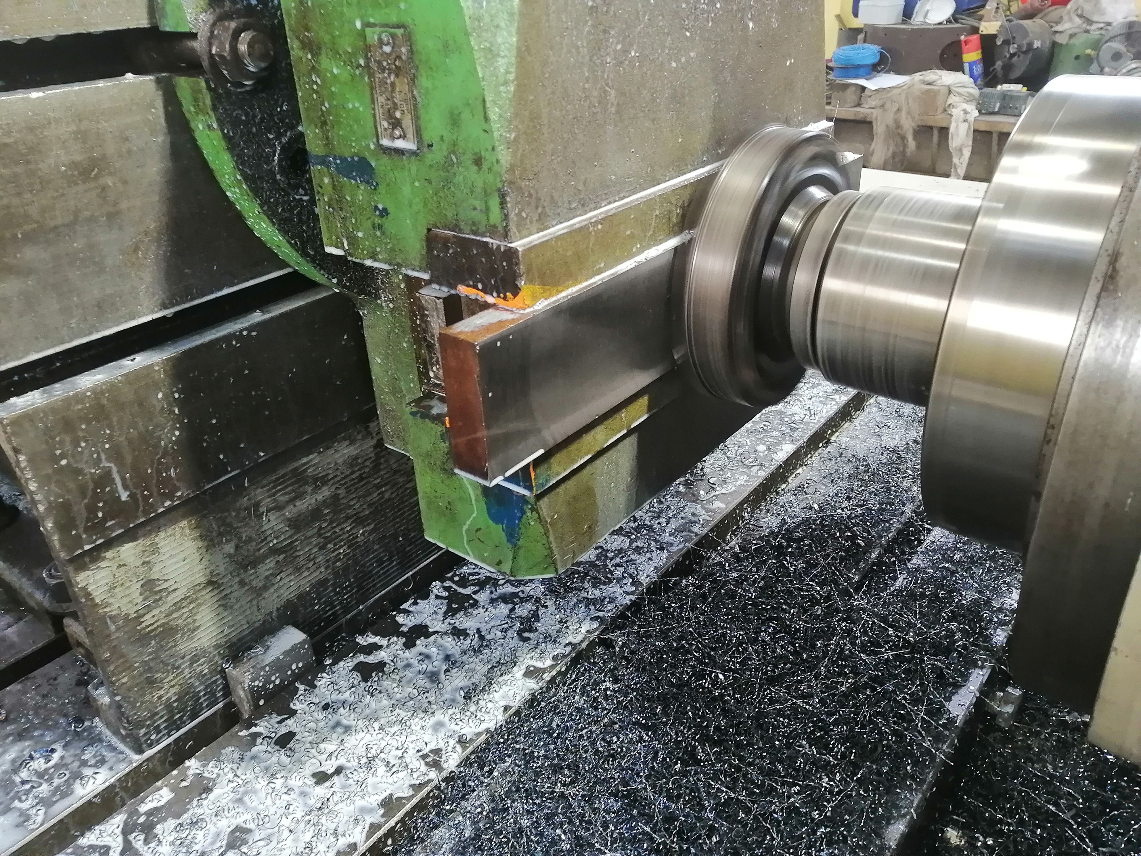 Иногда выставить резец и обкатать отверстие это полная задница. Вот тут я на резец, обкатки и расточку одной шейки (задача была расточить одну среднюю шейку) потратил 35 часов. Так как конструкцию для каждого замера надо было разбирать и обкатывать всё снова. Вместо люнетов использовались 4шт самоцентрирующихся роликовых подшипников, подошли по диаметру в плотную посадку в шейки а по внутреннему скользящая по борштанге. Был сильно удивлен найдя их на складе.