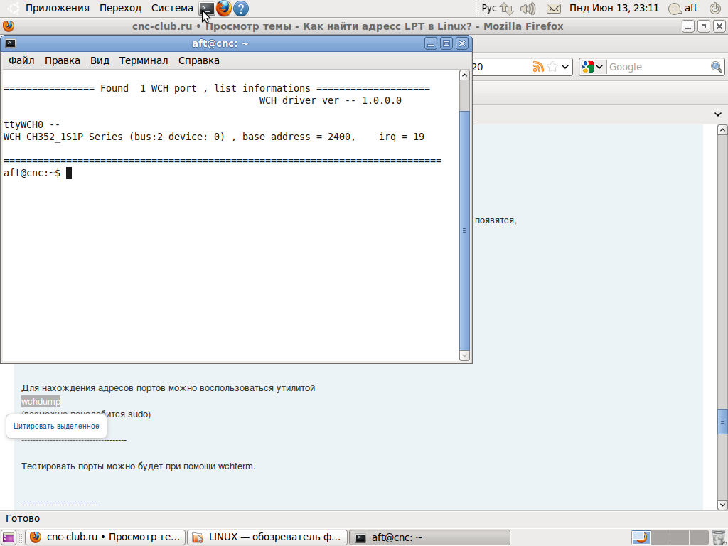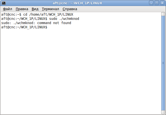 2. в терминале набираю cd /home/aft/WCH_1P/LINUX