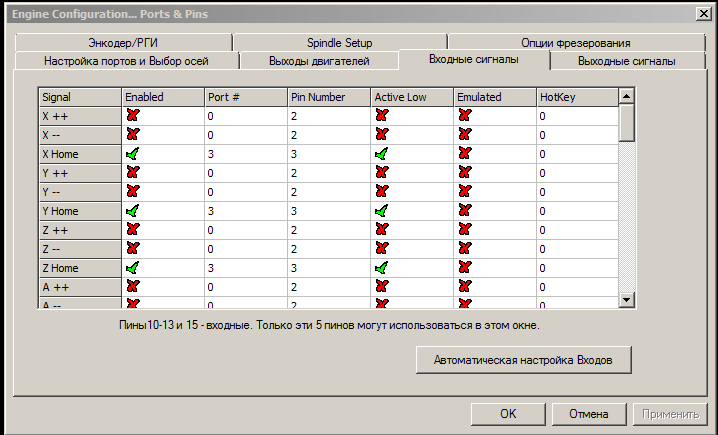 у меня стоят датчики NPN NC, в Мач настройки такие по одному подключенному датчику хоумится нормально, но как подключаю все, он перестает реагировать
