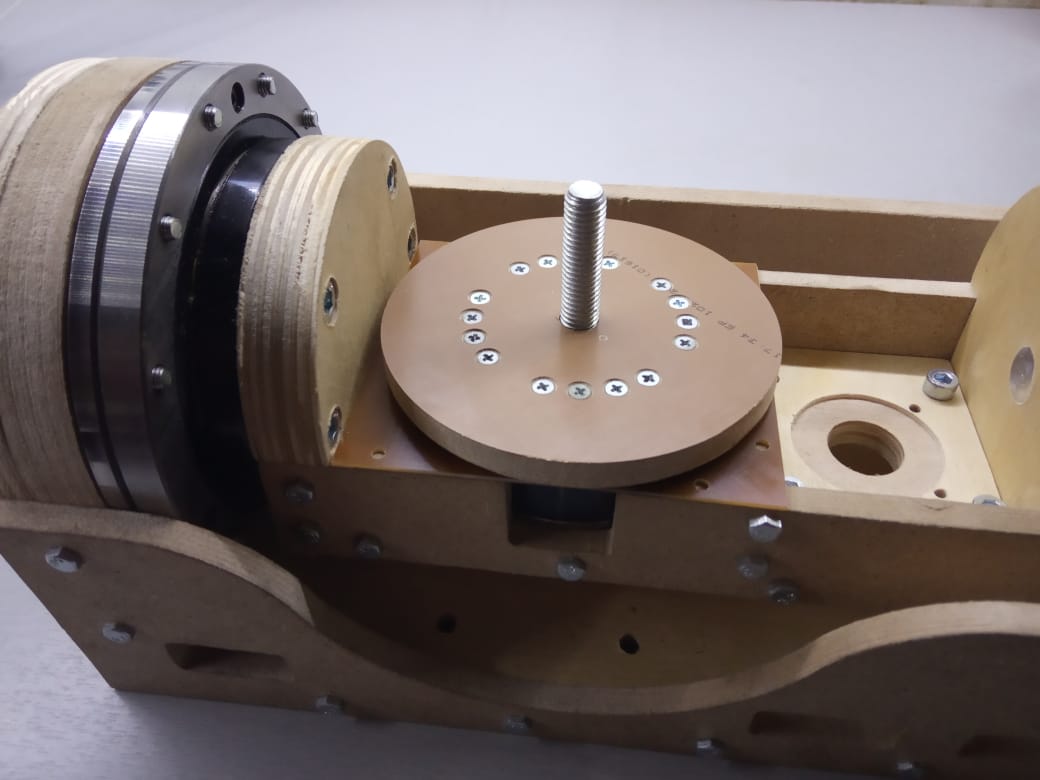 Фанерно-МДФ-ный прототип, на удивление, получился очень прочным. Конечно, в основе его две гармошки с сильными перекрёстно-роликовыми подшиниками. Но и замкнутые болтами трёхмерные конструкции тоже идут на пользу.