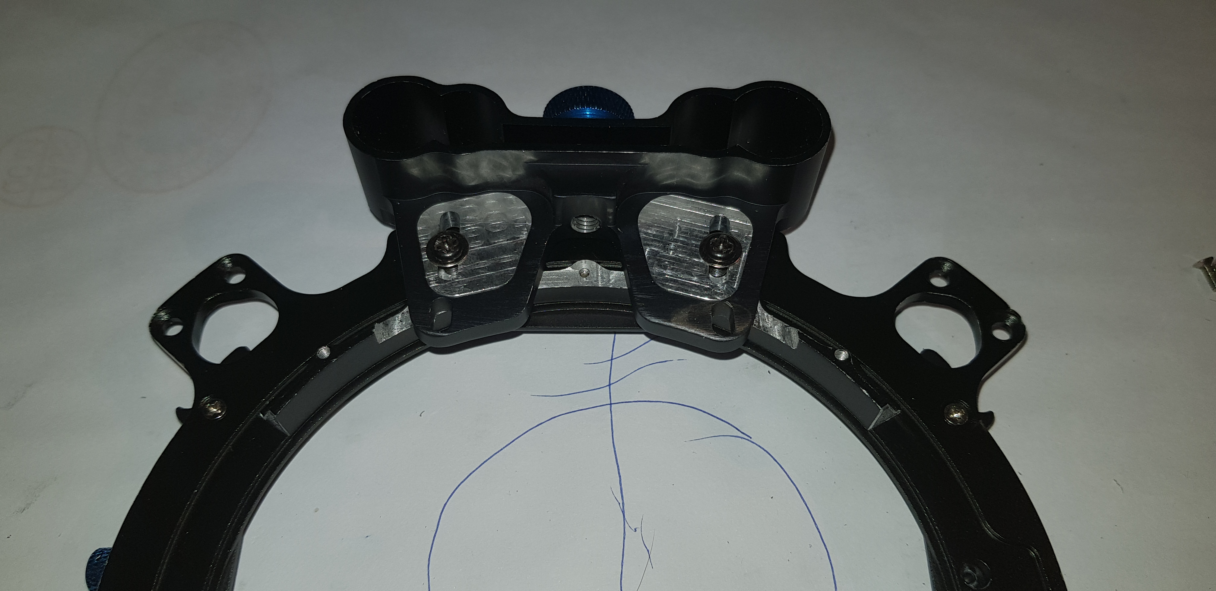Приварил два таких уха снизу под креплением шпинделя, в них болтики.